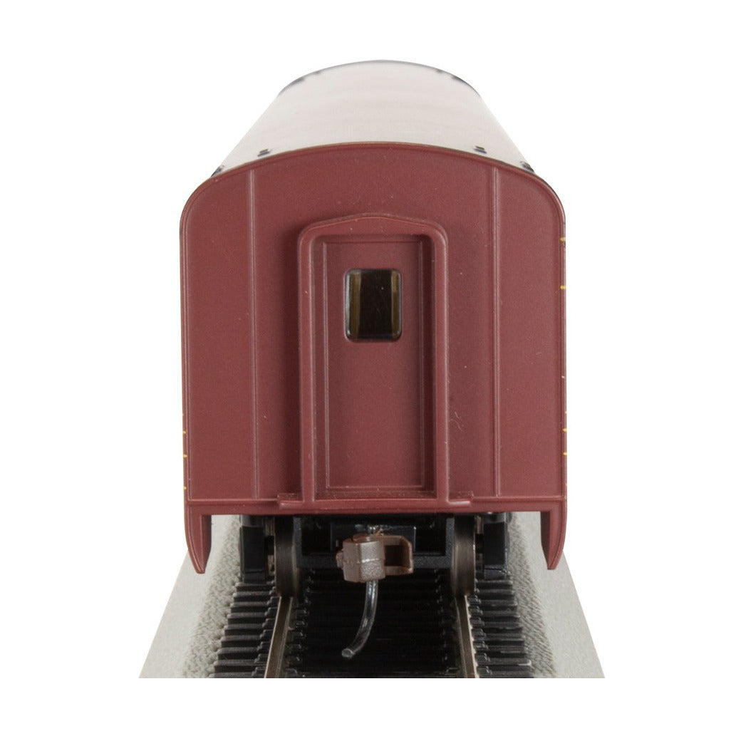 85' Smooth-Side Coach Car with Lighted Interior - PRR #4244 - FLEET OF MODERNISM - HO Scale. In the 1930’s lighter weight materials allowed for the development and production of a variety of coach, baggage, and observation cars as railroads ushered in the beginning of the streamline era. Materials like stainless steel, and aluminum, allowed for passenger cars to have smooth or fluted sides and smooth roof lines. Bachmann faithfully reproduces these passenger cars that are fully assembled with features that include; lighted interiors, Highly Detailed Painted Bodies with Precision Graphics (where applicable), Blackened Machined Metal Wheels with RP 25 Contours, Magnetically Operated E-Z Mate® Couplers, Non-magnetic Blackened Brass Axles with Needle-point Bearings, Celcon Trucks, and Added Weight for Optimum Tracking Performance.