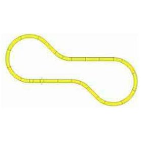 V11 Double Track set features modern concrete ties and superelevated curves for realistic banked motion (15"-16-3/8").
